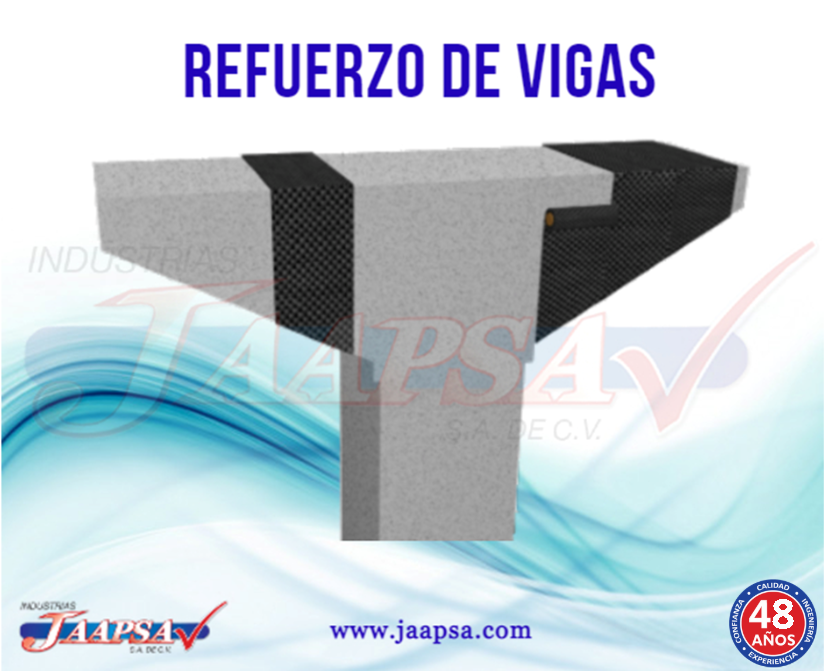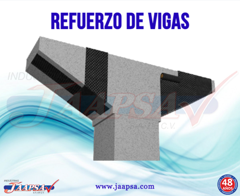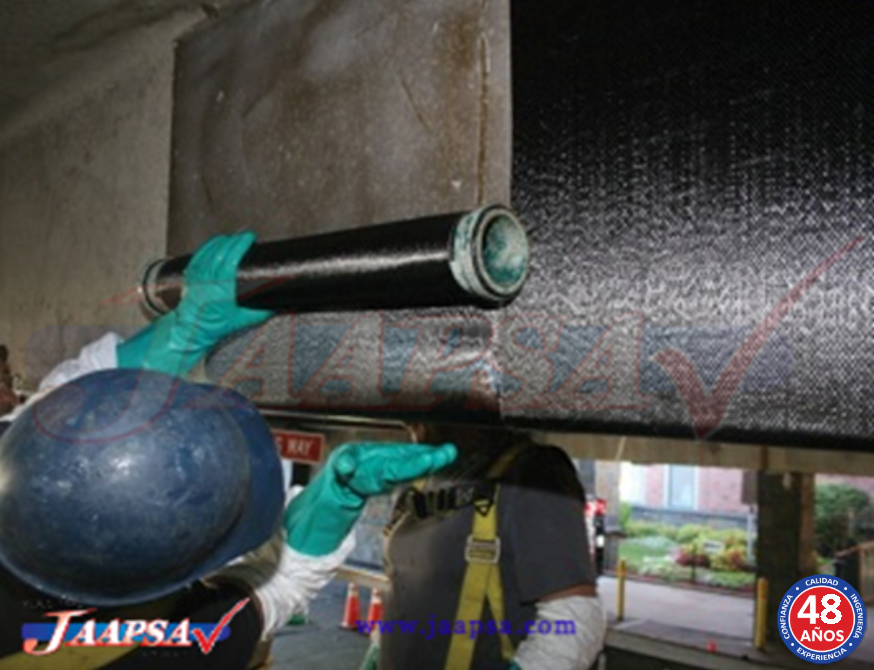 Para incrementar la resistencia a la flexión, la tela se une a la cara de tensión. Y para la resistencia a la cortante, la tela se une a la red de la viga.